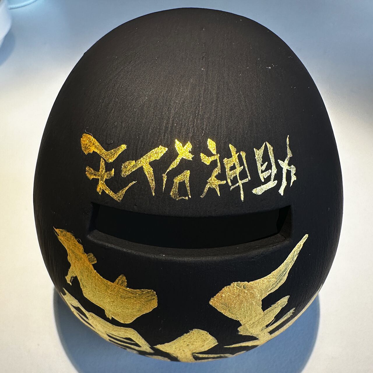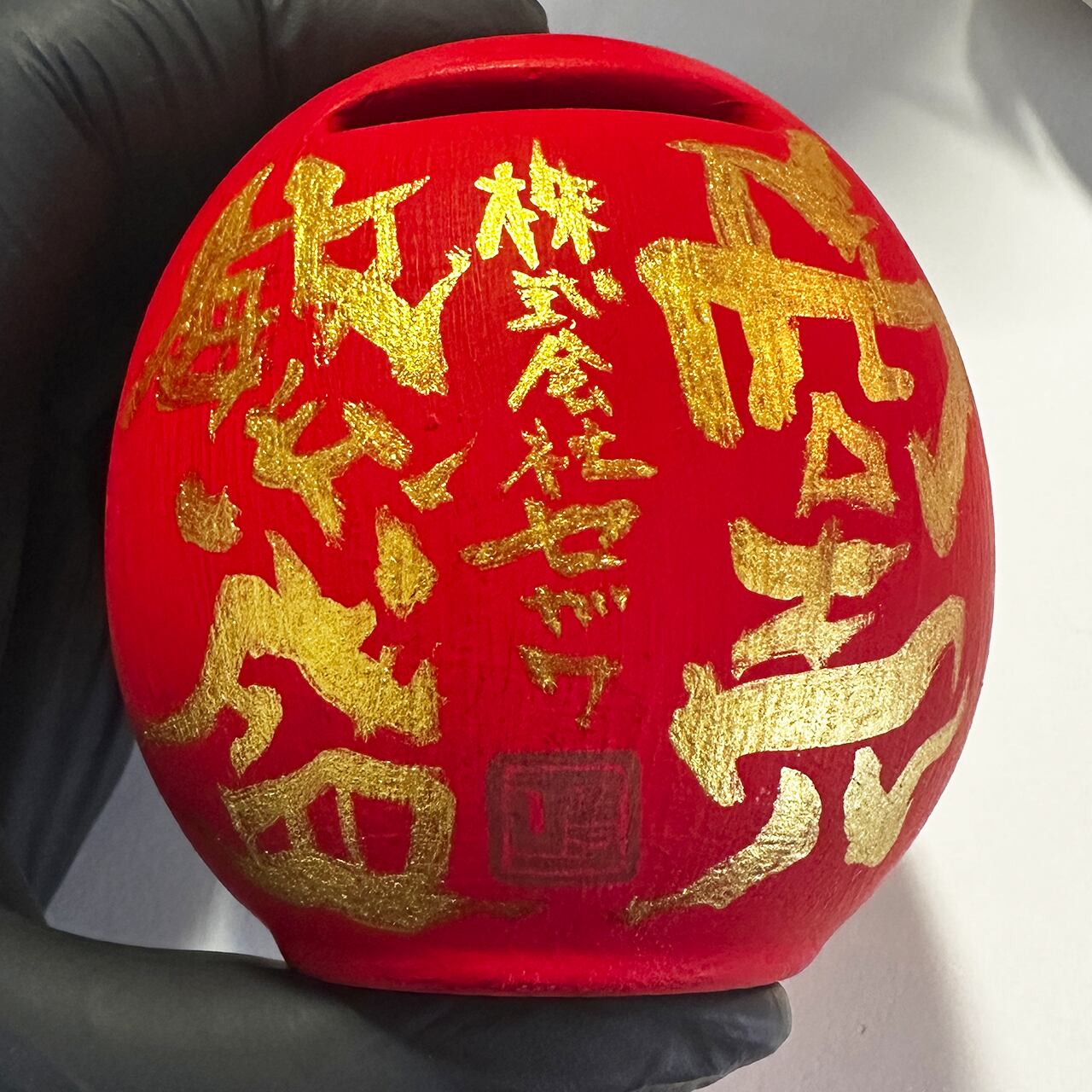 心を込めて塗り上げたダルマの背中に、